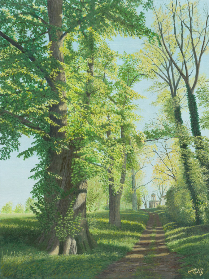 RingalleeÖlgemälde 45 x 60 cm, 2025Die Ringallee im Schlosspark von Veltrusy entstand im 18. Jahrhundert als Teil der barocken Landschaftskomposition der Familie Chotek. Mit ihrem kreisförmigen Verlauf verbindet sie die Hauptachsen des Parks und eröffnet Ausblicke auf das Schloss und die umliegenden Pavillons. Die von alten Eichen und Linden gesäumte Allee ist nicht nur ein historisches Werk der Gartenarchitektur, sondern auch ein lebendiger Lebensraum, der bis heute die Ästhetik barocker Gestaltung mit der Schönheit und Kraft der Natur verbindet.